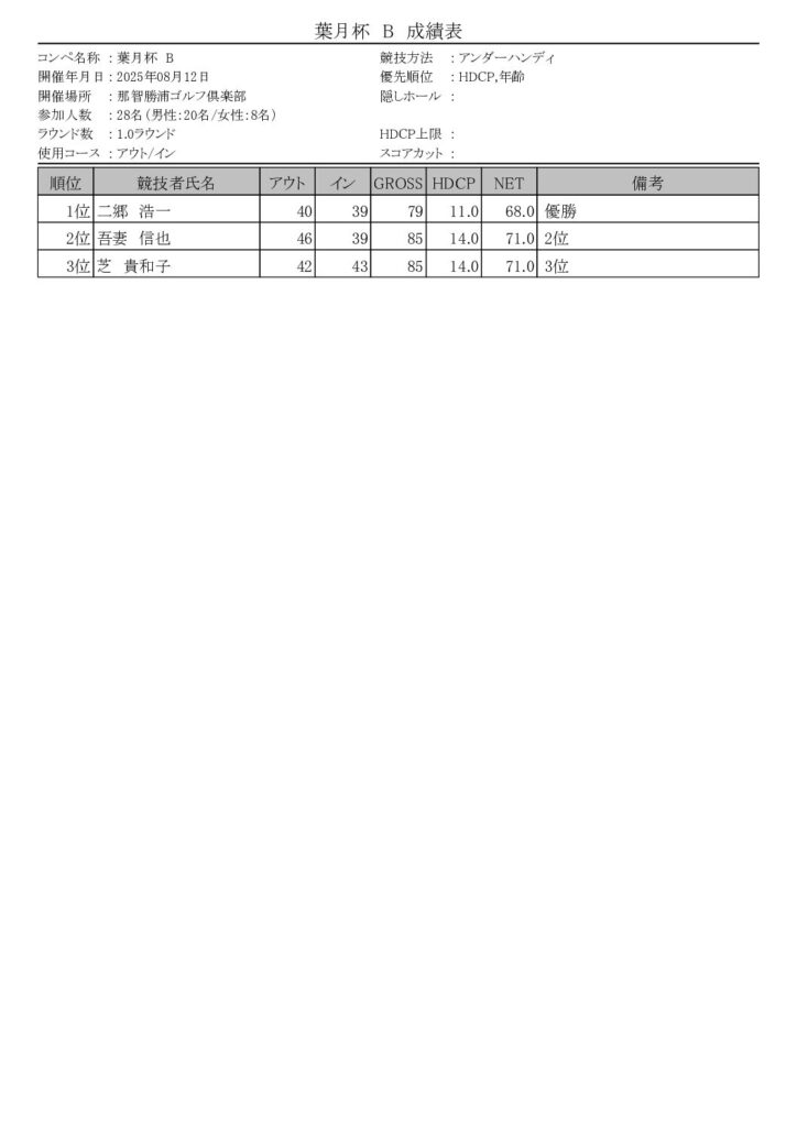 葉月杯を開催しました 競技 Twitter Facebook はてブ Pocket LINE コピー 2025.08.12 8/12(火)葉月杯が行われました。今回はAクラス21名・Bクラス28名・Cクラス10名・OP2名の皆様にご参加頂きありがとうございました。 入賞者は以下の通りです。 202508_葉月杯成績表A(入賞者)ダウンロード 202508_葉月杯成績表B(入賞者)ダウンロード 202508_葉月杯成績表C(入賞者)ダウンロード